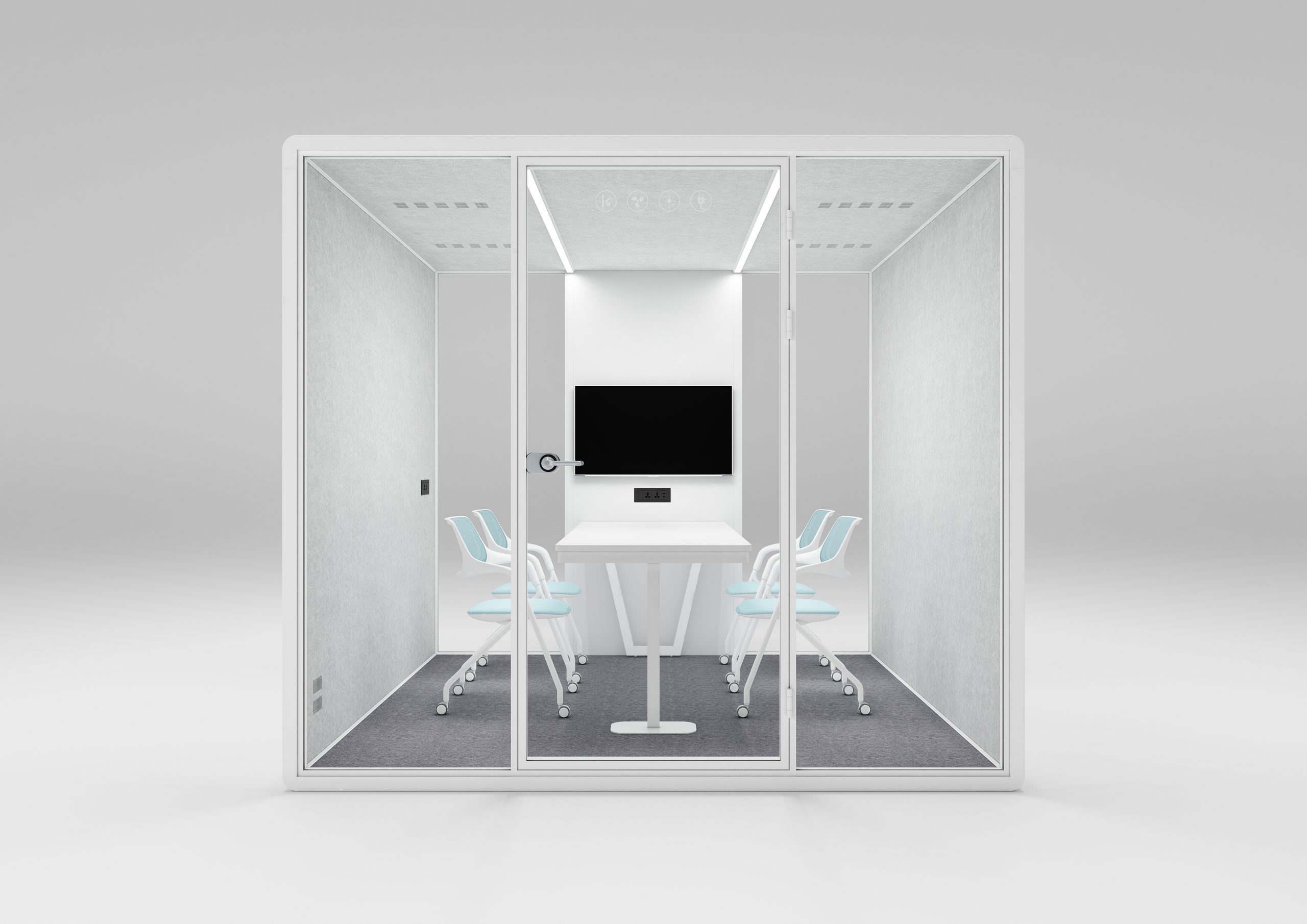 BOBBY incorporates acoustic materials that cushion outside noise and dampens internal noise giving the user a more confidential setting.