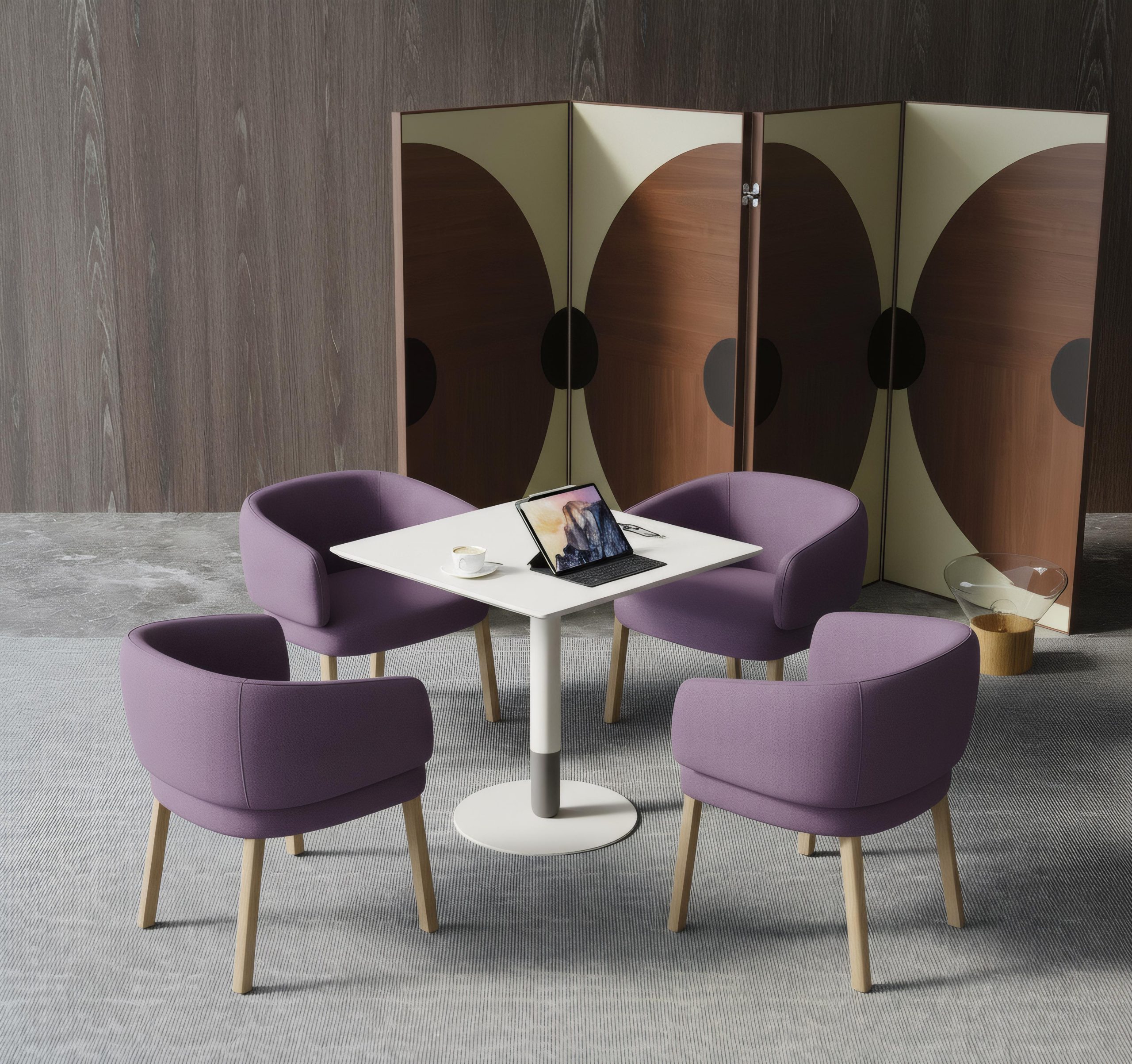 The Elba armchair is where comfort meets character. A softly curved back and generous seat invites the user to settle in, while rich upholstery adds a layer of tactile luxury. Paired with a timeless wooden base, Elba brings a sense of warmth and balance to any setting, whether a modern lounge, breakout zone or a classic reception space.