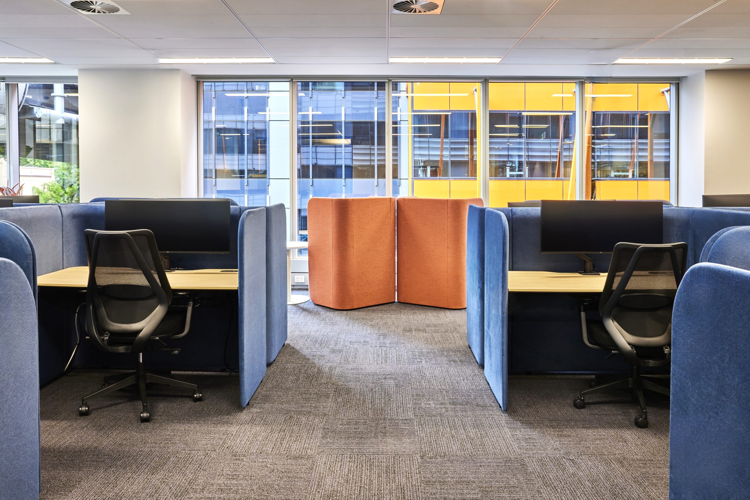 The LEISE is a flexible workspace screening sysytem that is designed to create a softer asthetic look and feel to hotdesking solutions and can be fully customised in shapes, sizes and colours and is 100% Australia Made